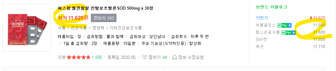 그래서 이번에는 진짜 역대급으로 혈관팔팔 가격이 11600원으로 아예 붕괴대버렸는데. 이걸 다시한번 60개 구매할까 고민이다.